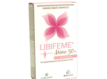 LIBIFEME® Meno 50+ es un suplemento alimenticio 100% natural, desarrollado para mujeres a partir del climaterio y durante la menopausia, cuando las variaciones hormonales pueden generar resequedad íntima, sofocos, incomodidad y menor calidad de descanso.